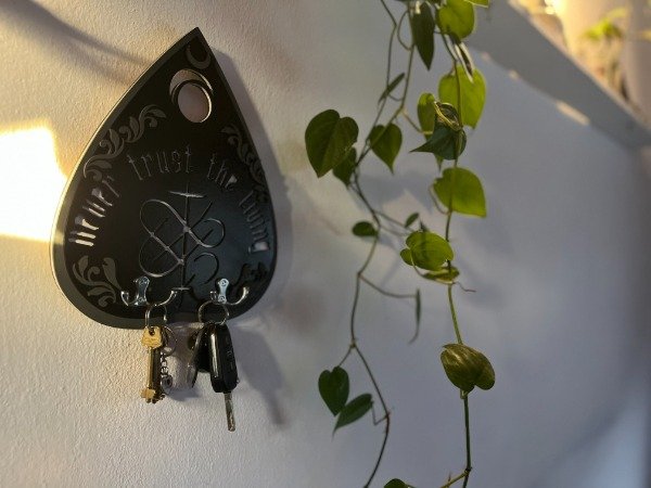 Les presento el nuevo producto de Lilith Goth Garden que une función, arte y misticismo. Un perchero ritual con forma de puntero ouija, y un sigilo mágico original, diseñado exclusivamente para esta pieza.