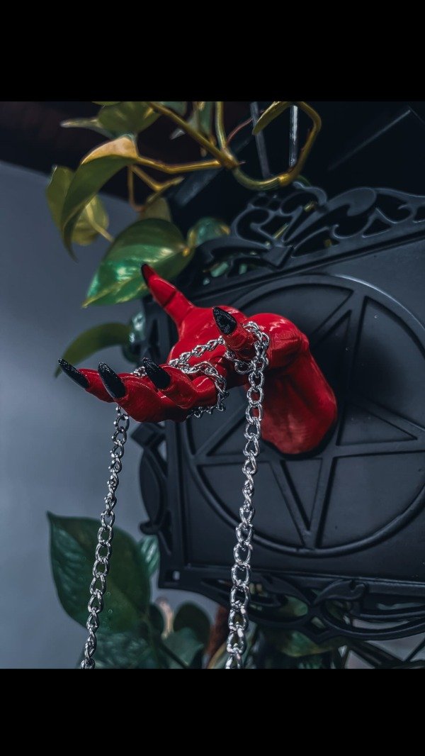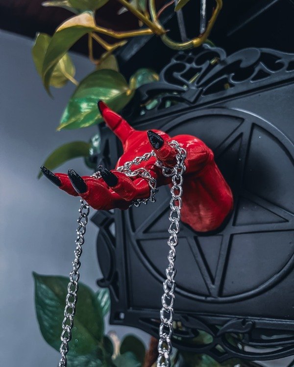 El cuadro mide aproximadamente 28cm x 28cm, ideal para darle carácter a cualquier ambiente. El detalle principal es una maceta colgante en forma de cráneo, sostenida por cadenas delicadas, perfecta para decorar con plantas pequeñas. El diseño incluye un fondo de pentagrama y detalles inspirados en la estética gótica, lo que lo convierte en una pieza ideal para los amantes del estilo alternativo.